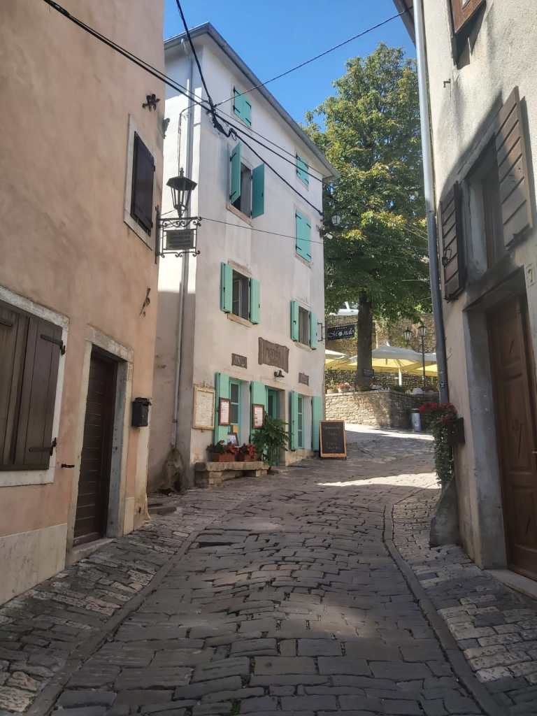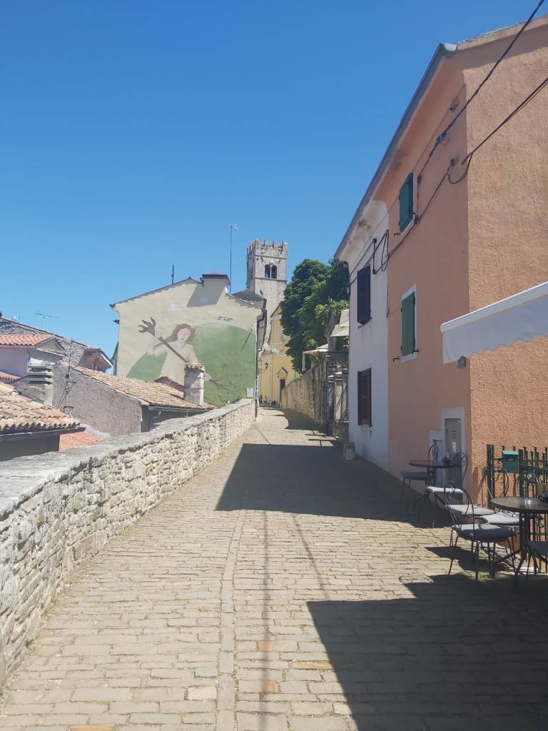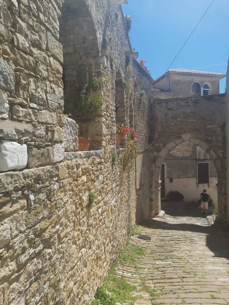Ako kanite posjetiti Motovun tijekom ljeta, svakako preporučujemo što ranije vrijeme jer imajte na umu da Motovun nije na brdu. Motovun je na BRDU. Ulice su jako strme i iziskuju određenu kondiciju. Nama je smartwatch na ruci u jednom trenutku krenuo pištati kako su otkucaji srca 175 pa smo ipak malo morali zastati prije nego nastavimo. Sami vrh i centar Motovuna je jedino mjesto koje je ravno s obzirom da se nalazi na malom platou. Svo ostalo vrijeme provest ćete ili penjući se ili spuštajući se po prapovijesnim kamenim ulicama. Mala zanimljivost za vas. Znate li tko je prvi podigao naselje na tom području? Rimljani? Ne, još dalje treba gledati u prošlost. Bilo je to keltsko pleme Sekusa i to otprilike 1500 godine stare ere. Samo ime Motovun je keltskog porijekla, a pretpostavlja se da je nastalo od riječi Montona što znači grad u gori. Očito nismo prvi druidi koji su Motovunom hodali.
